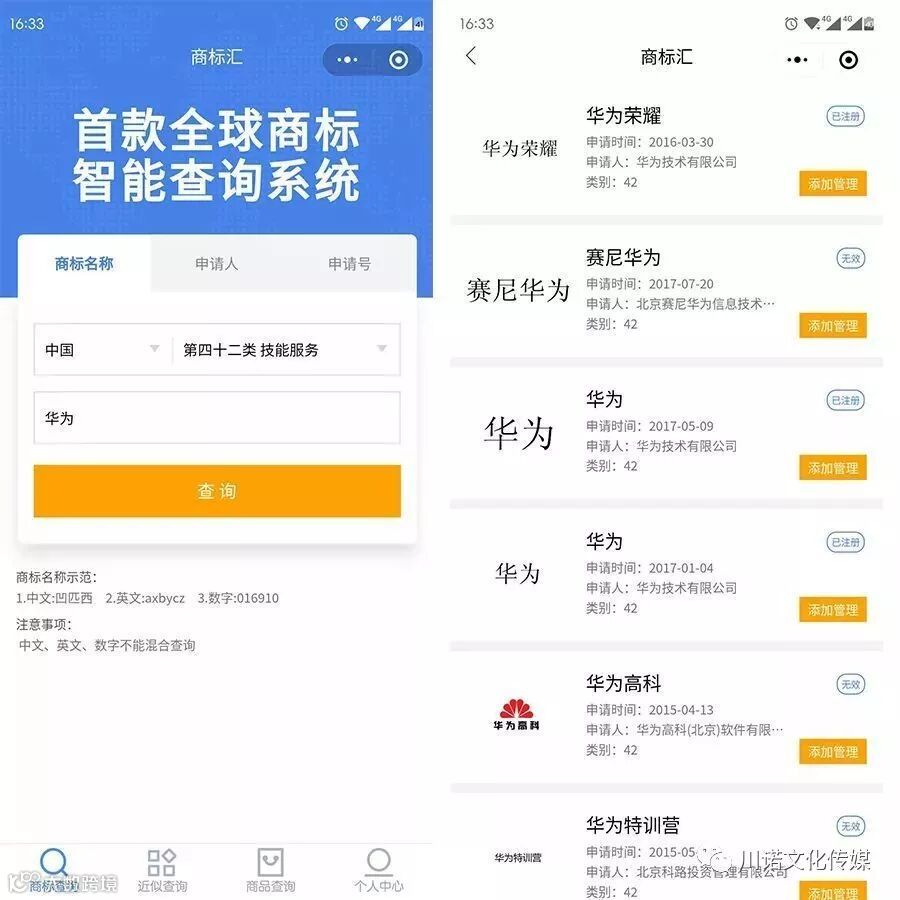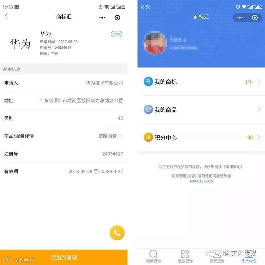 另外,还有个很人性化的功能,你还可以将某个商标“添加到管理”,那就可以到个人中心-我的商标找到。