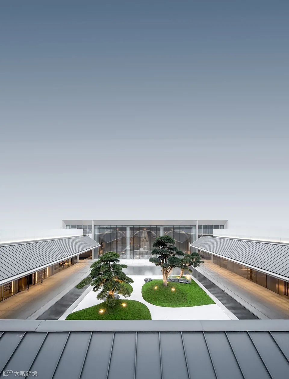 材料应用:为体现吴冠中笔下屋顶的‘薄’,建筑弃黛瓦而转用钛锌板,是中国住宅建筑从未有过的尝试,将墨画蕴意、水乡淡雅,演绎的更传神。