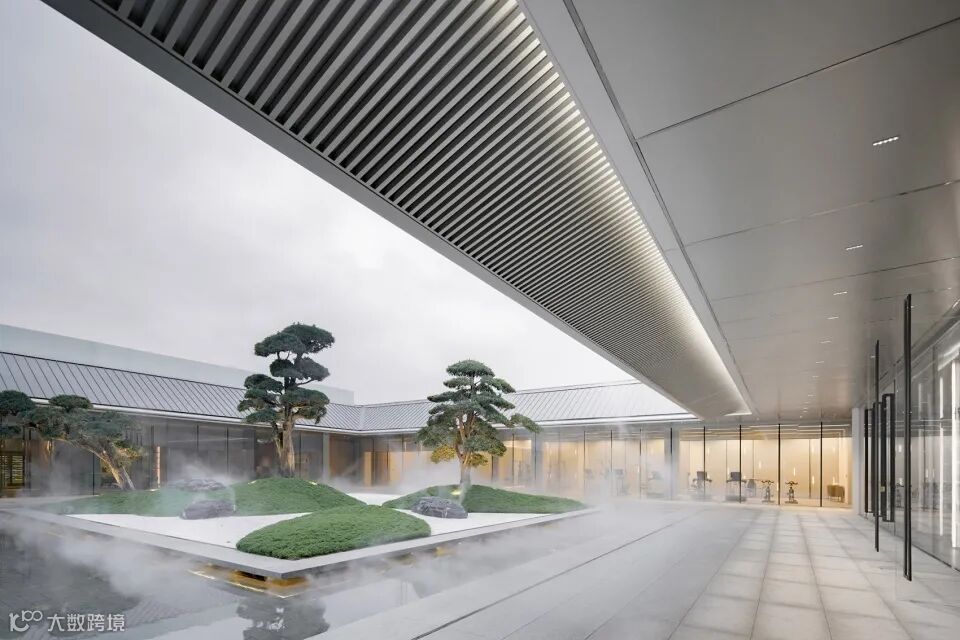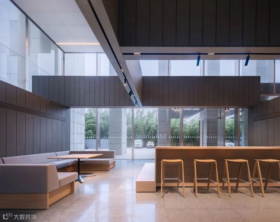 材料应用:立面设计遵循最纯粹的“线,结合面,形成体”的建筑生成逻辑:用硬朗的立柱和檐口线条,勾勒挺拔的建筑轮廓;用柔和的金属肌理和通透的玻璃面,编织细腻的表皮;线与面围合出简洁而有力的几何体量。