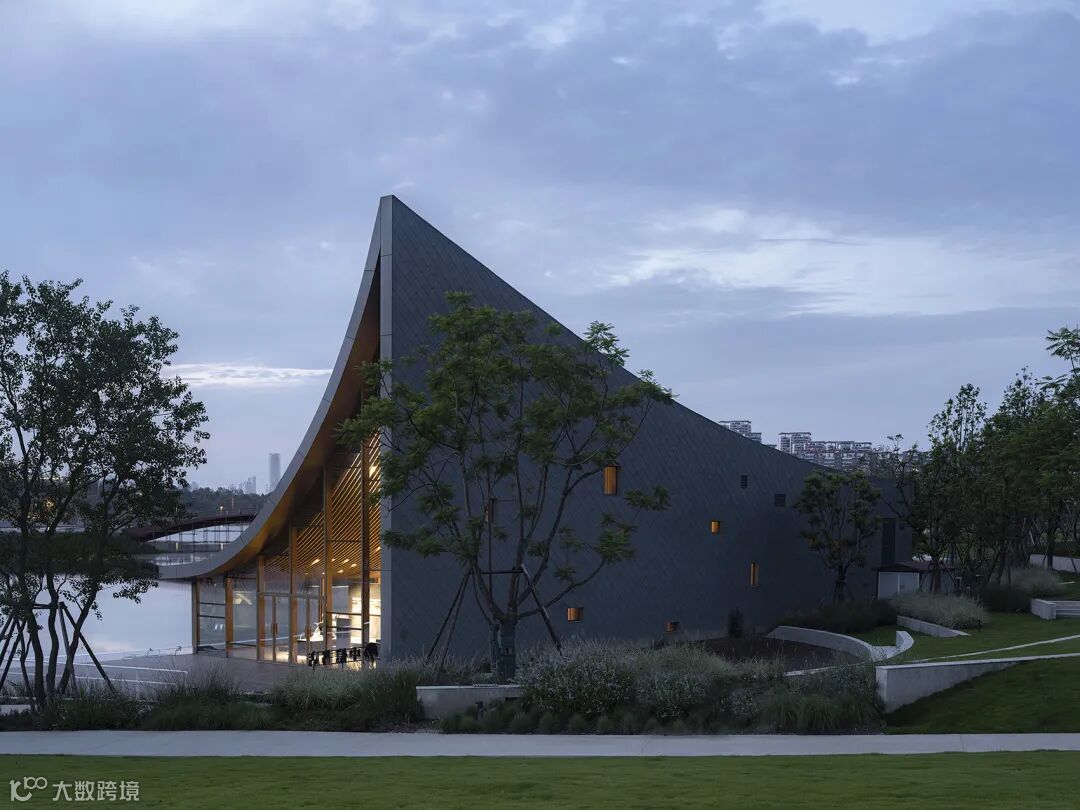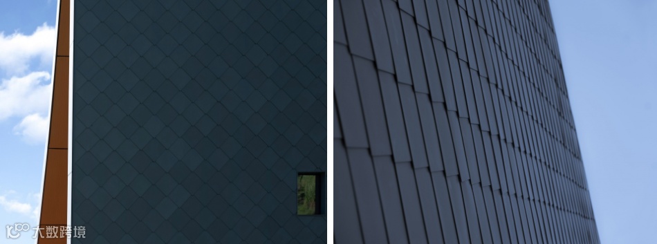 材料应用:项目选址于兴隆湖湾区东侧,以一个12m x 40m的矩形为平面基础,在水体与湖岸的交接边缘处,打造独特的室内外滨水空间。建筑表皮采用进口钛锌板,板面以平锁扣形式排布,形成独特的“鱼鳞形”肌理,与波光粼粼的水面相得益彰。