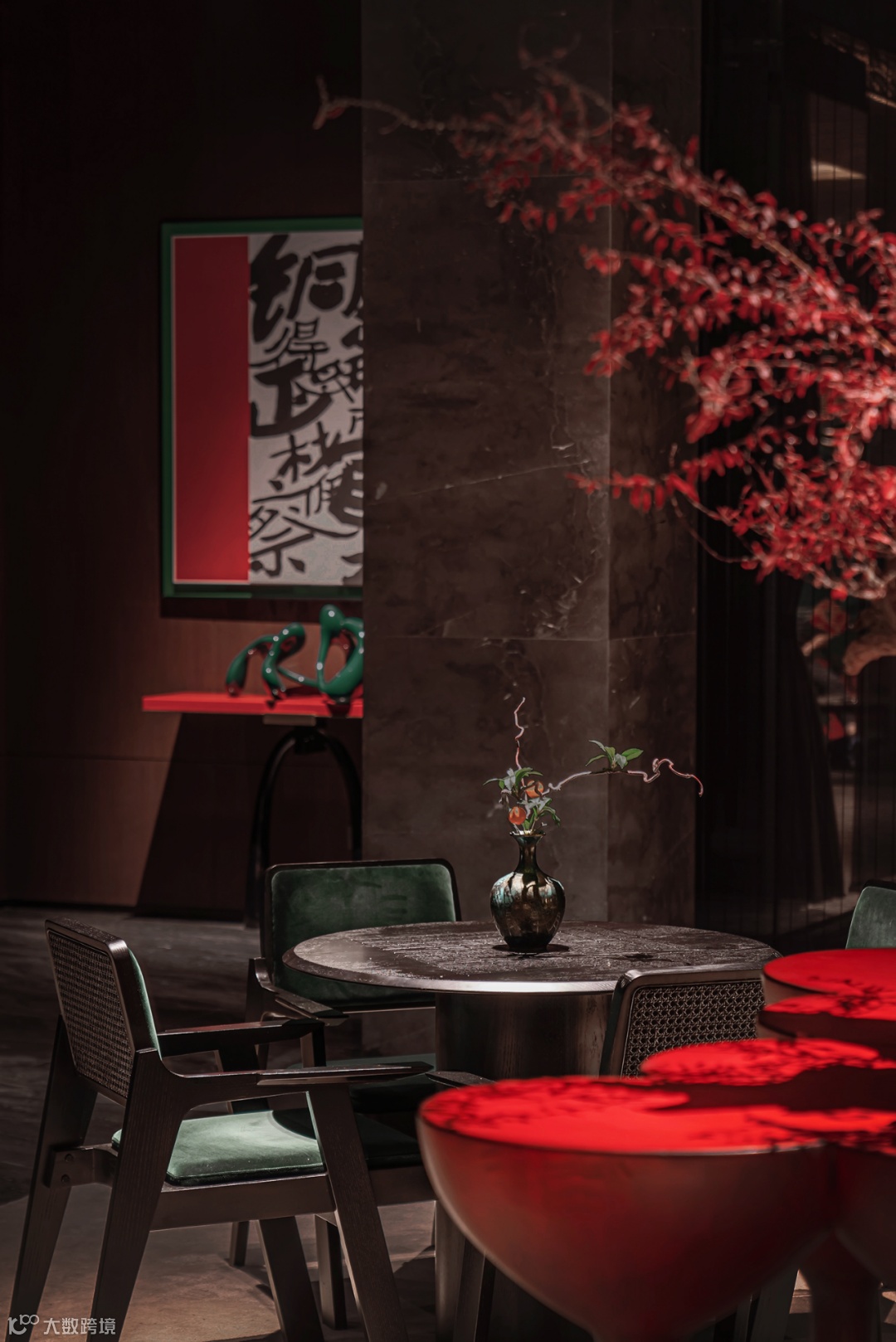整座会所利用中国红牵线各个区域,追随这抹色彩的无限跳动、隐形、重现,不经意间就走遍了所有角落,心中的文化自豪也油然而生。