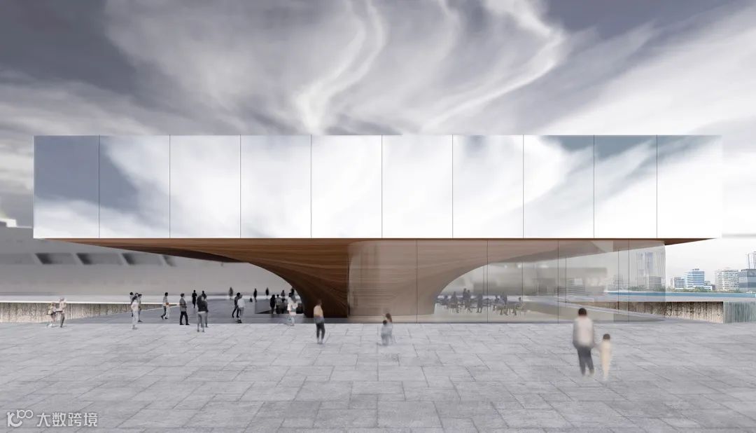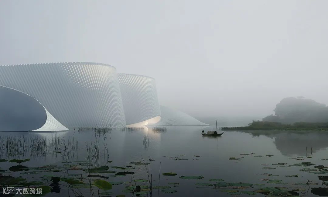 方案以‘海上的云’的概念展现漂浮的建筑的理念,海洋博物馆以一种轻盈谦逊的方式融入山海之间,轻柔、自由的建筑形态与大鹏半岛独特的环境风貌紧密融合,有机连接起周边山、海、湿地和城市景观,形成陆地与海洋的有趣对话。优雅而轻巧的设计展现的是一种“漂浮建筑”的理念,力求以一种轻盈谦逊的方式融入山海之间。该建筑成为了当地景观的一部分,与周边山、海、湿地相互联系。博物馆从外观上看去像是积云,光线穿透,可以看到外部景象,进一步与周围环境建立了紧密的联系。内部连续的无柱空间使博物馆每个功能区间之间既相互独立又形成有机的连续。