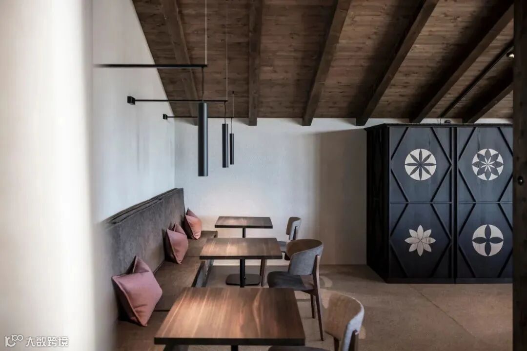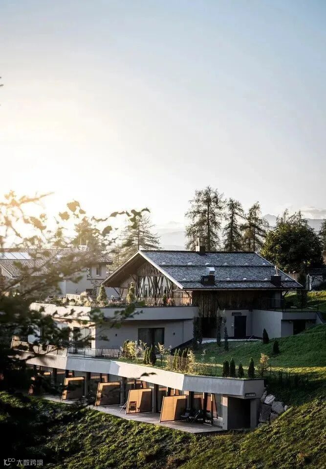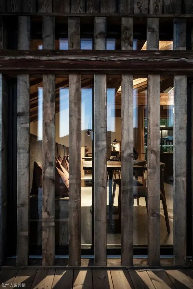 在建築內部,所有的房間都從可以俯瞰山谷的大窗戶中獲得光線,在大型木桁架下它們無縫構建,這是根據當地的建築傳統重新開始建造的,以恢復典型的南蒂洛爾農莊的所有感覺。即使是給人留下簡單原始水泥砂漿印象的地板,也旨在重現原始穀倉不平整的表面區域(經過特殊處理使表面防水和防汙)。