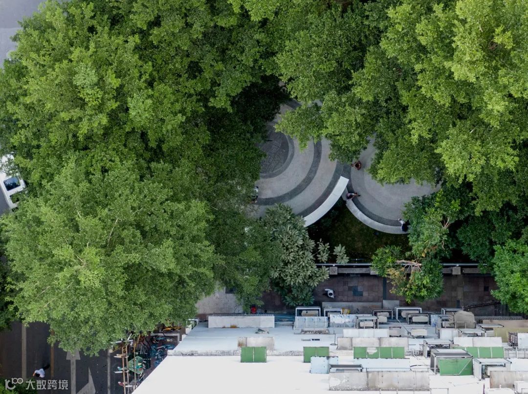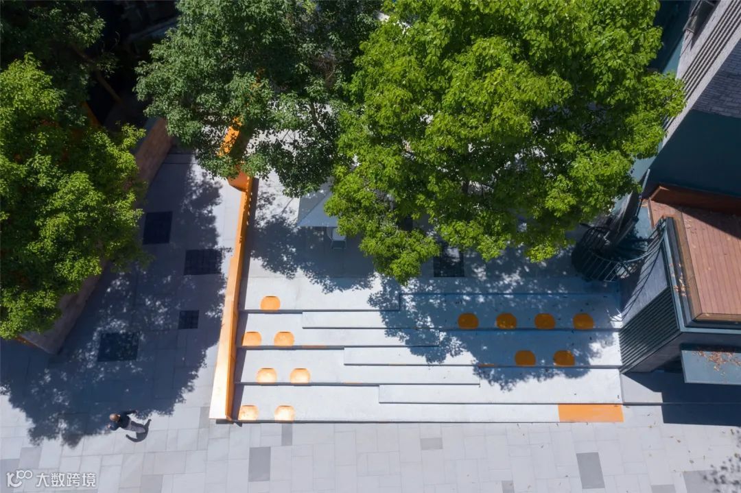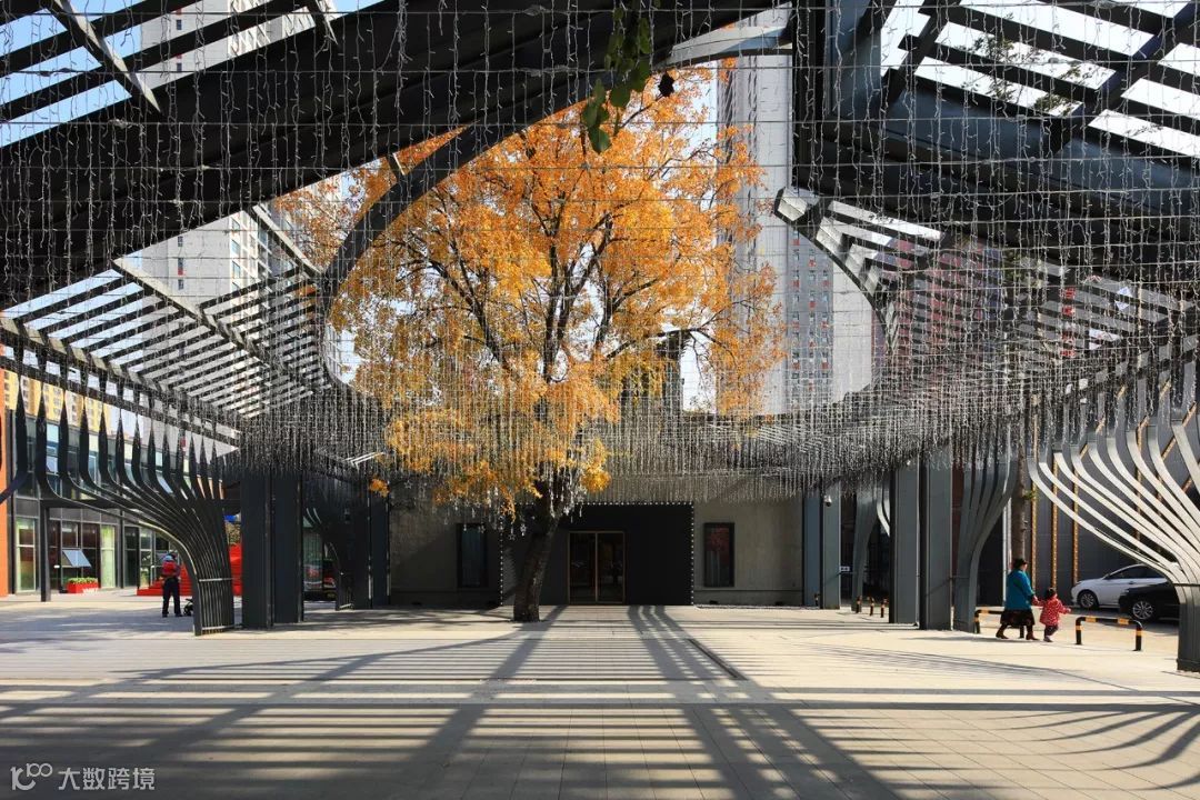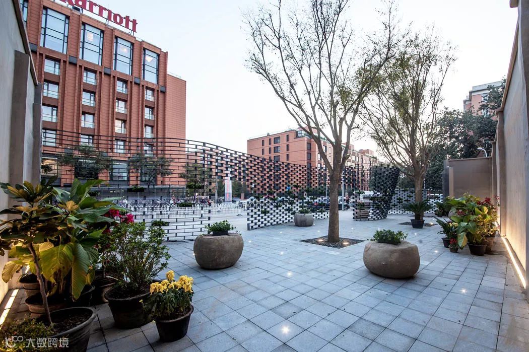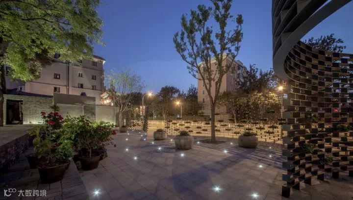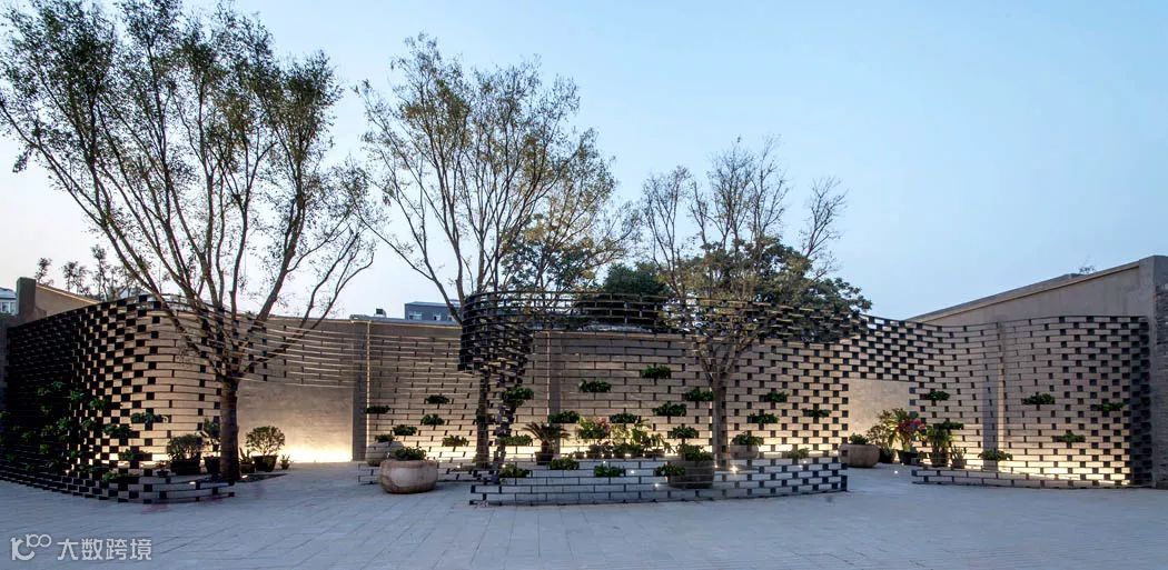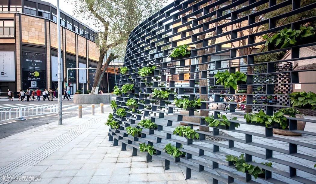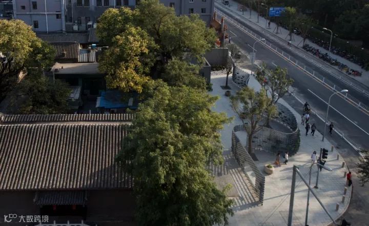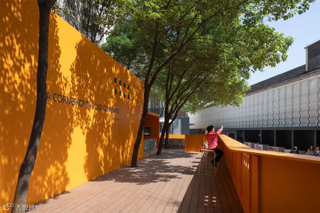 结合“墙上痕”的创作,设计师又依托场地内已经存在的高大树木,种植了一些胸径较大的国槐,营造了“树下荫”的效果,连同“墙上痕”中的立体绿化和场地内的盆栽植物花卉,共同构成了一幅副老北京四合院的生活场景片段,以此唤起和重构公众对于旧城生活的集体记忆。