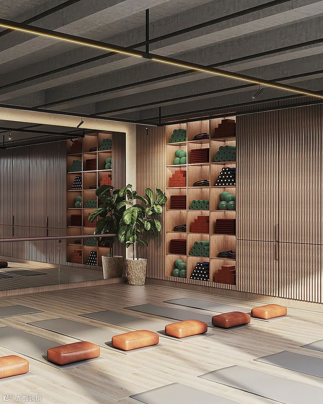 在二楼,MAWD 改造了 9,300 平方英尺(863.9 平方米)的设施,包括健身房、瑜伽室和会议室。