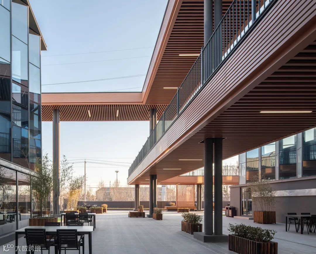 对于复廊元素和新建的体育馆等功能,采用钢结构形式,将连廊柱式以三根小截面圆柱集束进行表现,既满足结构需要,又纤细美观。