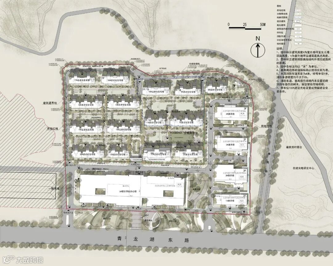 项目的场地条件给我们留下了深刻印象:场地位于潍坊安丘市唯一的国家3A级青龙湖景区内,周边自然条件优越,与之形成强烈反差的是项目地块内的5栋现状建筑物。