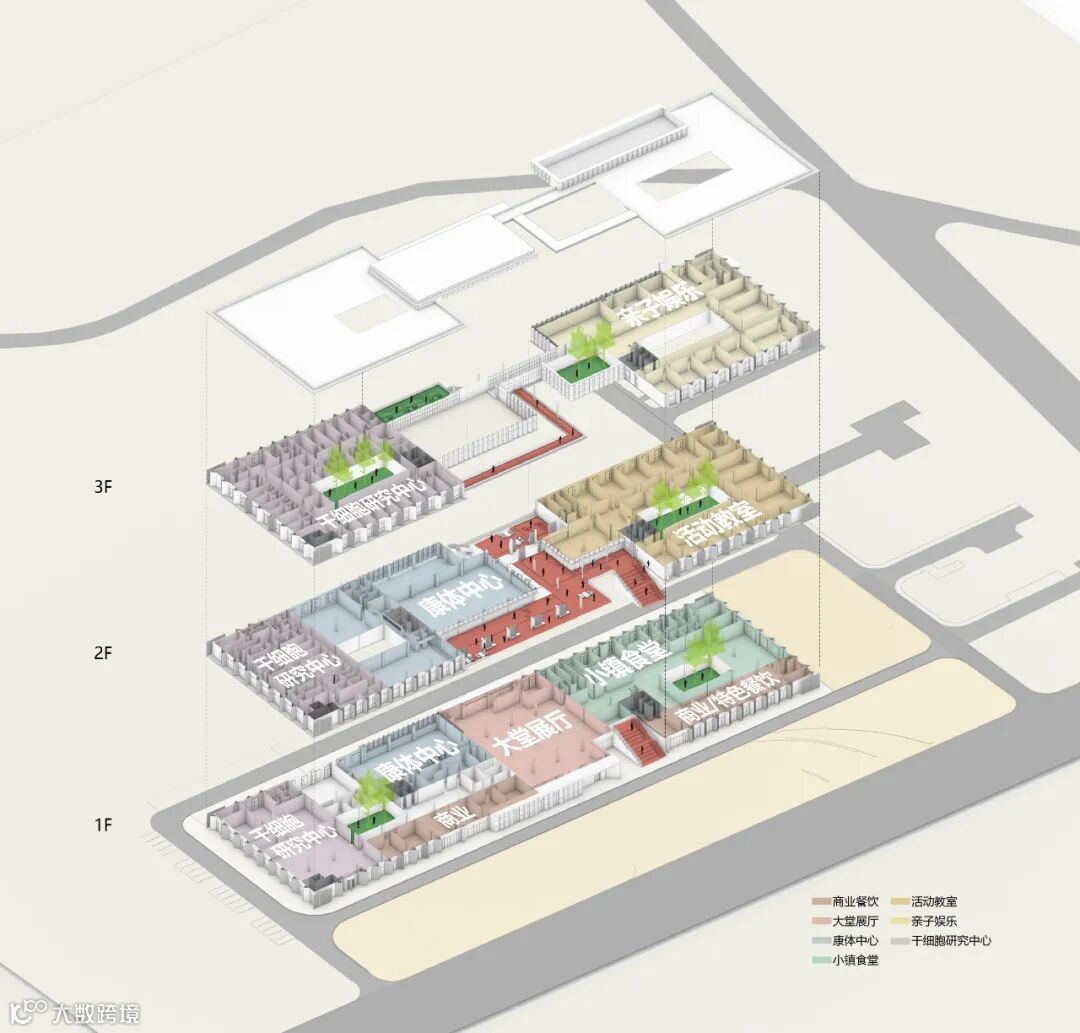 业主提了两点要求:一是既有建筑物改造,形成特色的同时控制造价;二是建筑物未来能作为整个康养小镇主要的综合配套来使用,包含颐乐学院、小镇食堂、健身中心、护理院等功能,并且希望这些配套能够持续经营。项目的挑战正在于康养配套和城市更新之间的“化学反应”,通过激活闲置的厂房来激活老人闲置的生活。