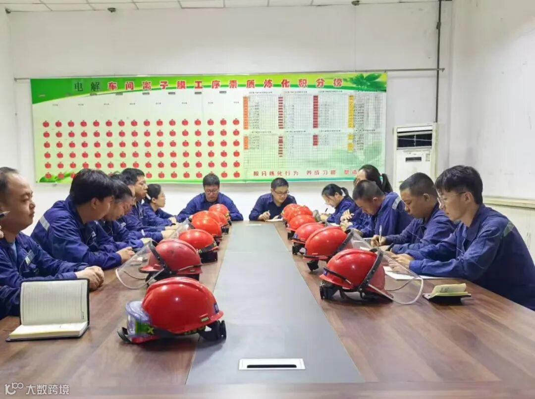 电解车间离子膜丙班安全“微课堂”现场(席伟 提供)