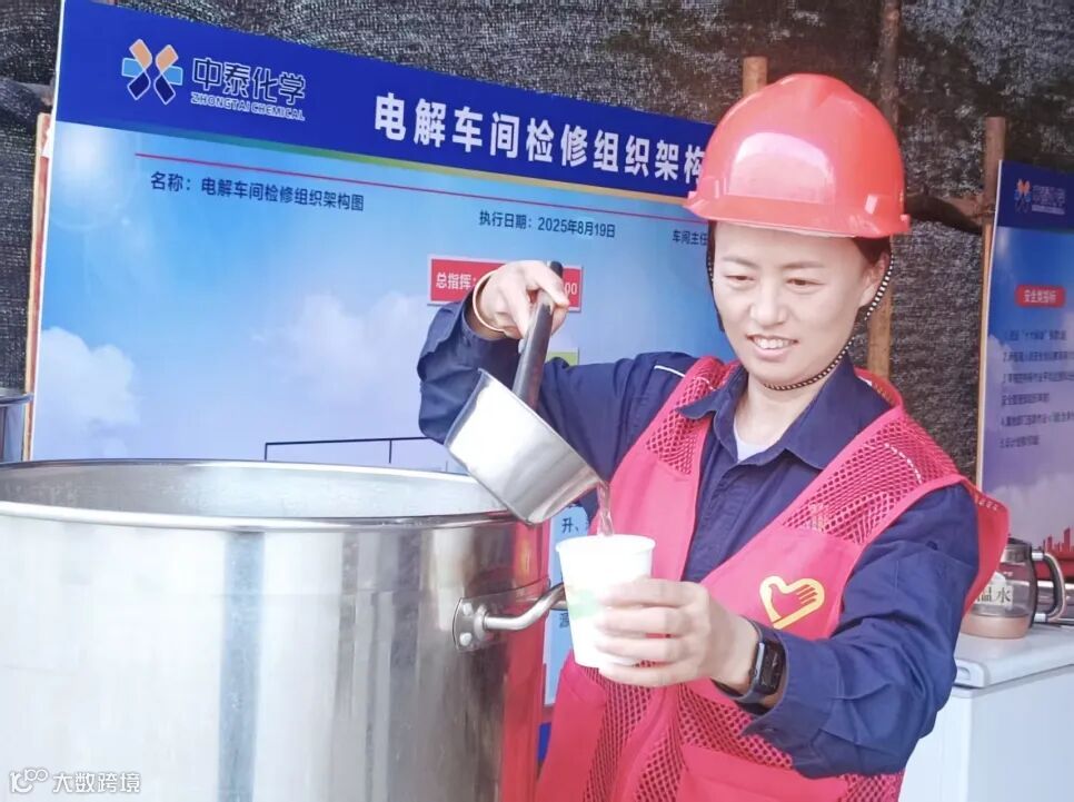 电解车间三号装置厂房内机器轰鸣渐歇,一场与时间赛跑的检修攻坚战正在打响。在忙碌的检修现场,一支志愿服务队早早穿梭于检修指挥部之间。她们提前打扫卫生、擦拭浮灰、准备菊花茶,做好各项后勤保障。每隔一小时,她们就对饮水区进行清洁洒水,及时通知大家补给绿豆汤,反复叮嘱注意防暑,用细致入微的服务为一线检修人员送去夏日中的一抹清凉。