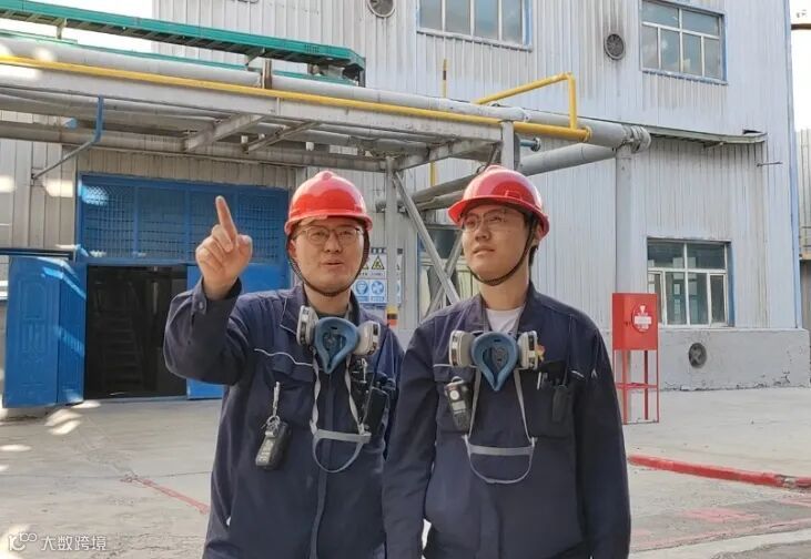干燥操作工王伟戴上安全帽,开启了巡检之旅。他穿梭于管道间,仔细查看设备温度,核对设备信息,对安全消防设施逐一排查。他的徒弟左扬凡今年是第一次在岗位上过中秋节,思念家人的愁绪悄然涌上心头。王伟主动与徒弟聊天,分享自己在车间十余年的成长点滴。他说:“咱们运行班组,坚守岗位是天职。每次巡检虽平凡,却关乎工艺设备稳定与人员安全,过节更不能松劲,务必严谨细致。”交流后,师徒二人又并肩踏入厂房,再度投入到巡检工作中。