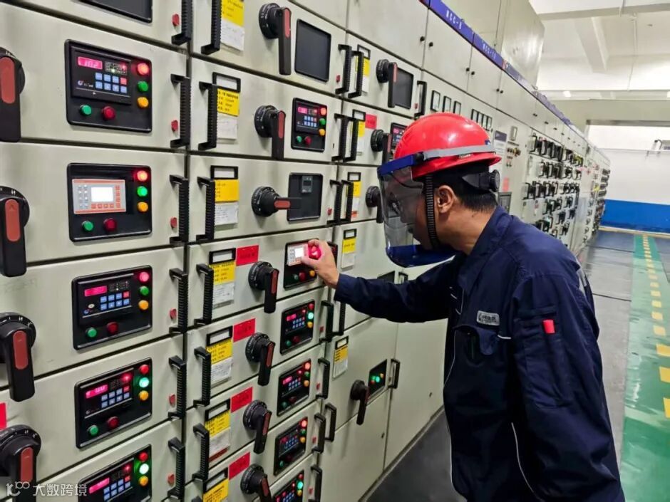 早上九点半,配电室铁门“吱呀”一声开启,北区电气班组的朱殿栋背着工具包走进来,蓝色工装在晨光中格外醒目。“配电室是厂区的‘心脏’,每一组数据都不能出错。”他边说边取出红外线测温仪,逐个配电柜检查设备运行温度,目光扫过一排排跳动的数字,手中的巡检仪迅速记录下设备运行数据。