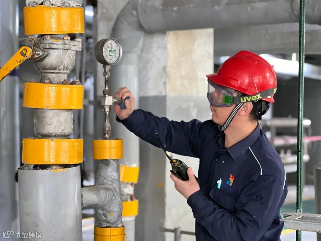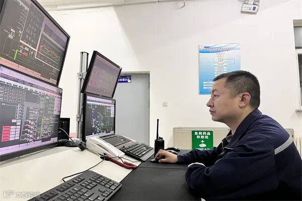 范晓磊刚走进控制室,水处理副值于程已戴好劳动防护用品,进入了生产现场,开始了接班后的巡检工作。伴随着机械的轰鸣声,他熟练地拿起小螺钉测量着设备参数,运行方式、温度、振动、油位,他一个都不放过。面对持续升高的温度,他对设备的运行声音和温度十分关注,他会与上一趟的巡检数据做对比,确保设备运行正常。于程说:“巡检工是监盘人员的眼睛,每一次巡检都要尽职尽责,发现隐患及时上报处理,设备的安全运行由我们共同守护。”