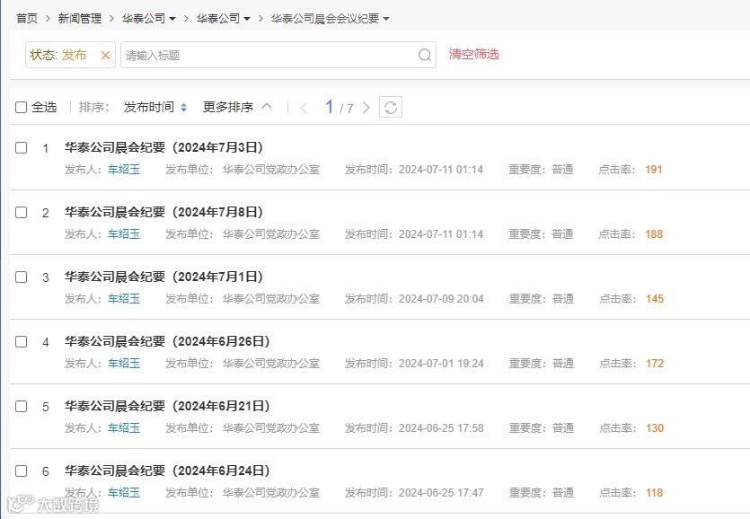 为保障会议精神落到实处,7月16日上午,党政办公室主任组织部门人员重点传达了近期晨会精神,重点对认真阅读晨会纪要,落实会议工作安排进行了再次强调要求,从即日起,严格落实公司主要领导要求,对晨会纪要落实情况加强跟踪督办力度,对各部门晨会纪要阅读情况进行定期核查,采取“每周一通报、每月一考核”方式,督促各部门领导干部及专业技术人员,切实把自己摆进去、把职责摆进去、把工作摆进去,发扬刀刃向内的自我革命精神,真正形成学习会议精神良好习惯,全面落实会议工作安排,以督办牵引学习、用学习深化认识,贯通抓好“学、查、督、改”各环节,多措并举,推动华泰公司晨会会议精神走深走实、工作落实落细。