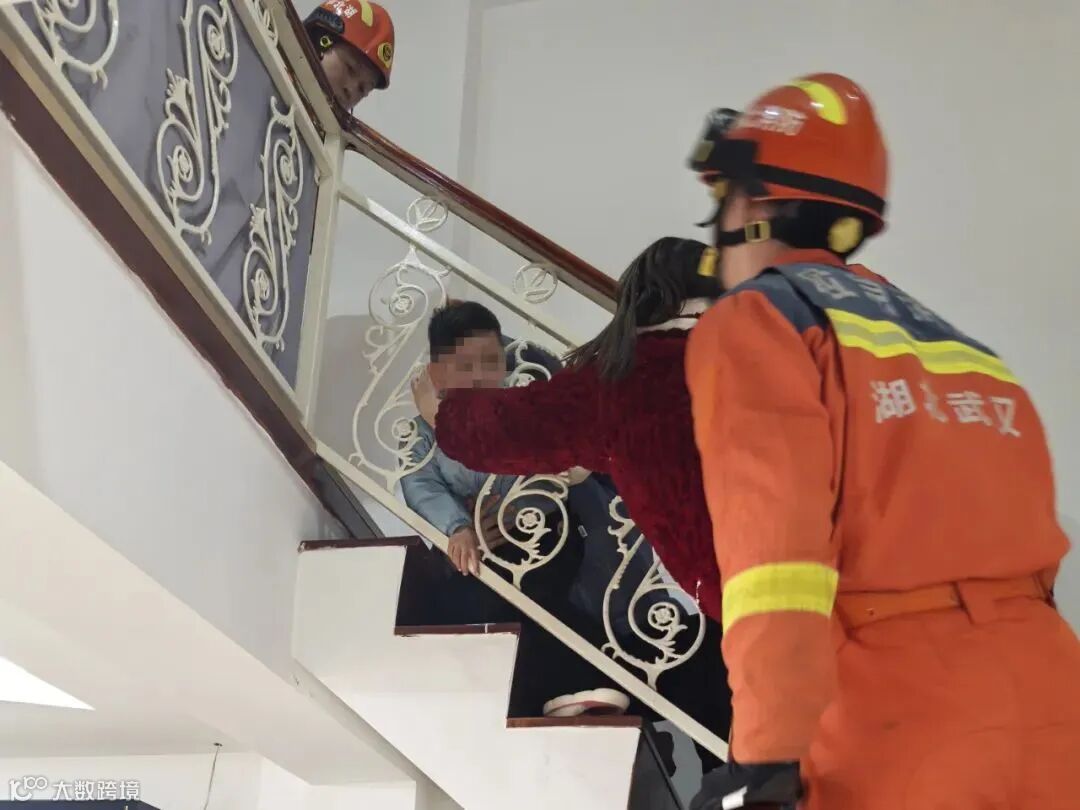 3月12日12时44分许,武汉市东西湖区常青花园某小区内一名四岁男童在家中二楼活动时,不慎将头部卡入扶梯金属材质的护栏缝隙中,家长拨打119求助,消防员抵达现场后将孩子成功解救。