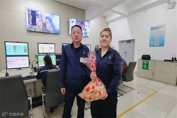 辅控休息室内,车间工会主席周江涛代表华泰公司工会向维吾尔族员工布阿依谢母·阿布都热孜克送去了节日的问候。大家一起吃着馓子,享着古尔邦节家中的风俗习惯。片刻休息后,她立刻返回岗位上,进行着岗位操作。“古尔邦节能在岗位上吃到美味的馓子,心里十分温暖,虽是节日,但只要在岗位上,我就要时刻保持良好的工作状态,尽职尽责的履行岗位职责。”