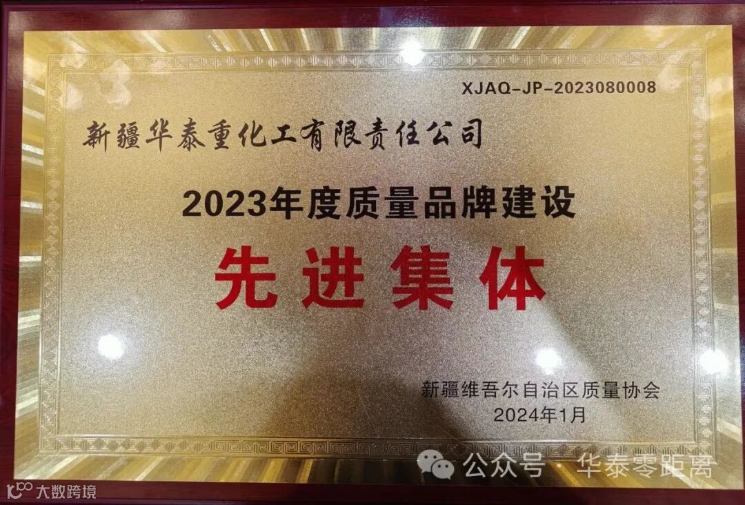 1月12日,新疆华泰重化工有限责任公司(以下简称“华泰公司”)接到喜报,在新疆质量协会组织召开的2023年第八届十次理事会暨质量提升工作总结会议中,华泰公司荣获“2023年度质量品牌建设先进集体”荣誉,迄今为止,华泰公司已连续4年获此殊荣。