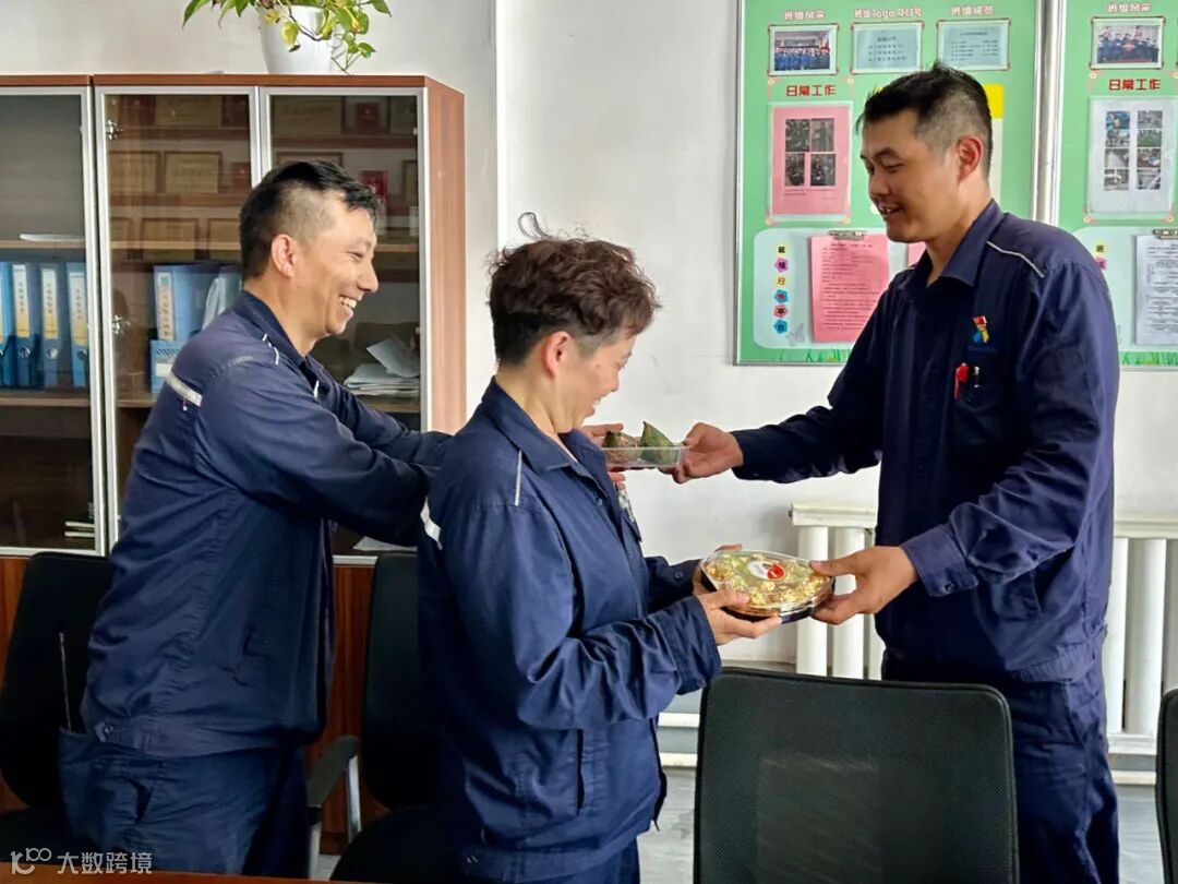 在车间的大家庭中,有着许多的双职工家庭,他们既是夫妻又是同事,他们共筑着“小家”,又耕耘着华泰公司这个“大家”。很多人羡慕双职工能够朝夕相处,可是,有人早出晚归,很少能够出双入对。有人工作繁忙,顾不上家里的琐事。他们之所以可以不惧风雨、不懈奋斗,那是因为他们始终是彼此最坚强的后盾。中午午餐时间,车间副主任闫强带着粽子和代表着甜蜜的巧克力,来到3#会议室为双职工们送去节日的问候与慰问。“粽子很香,巧克力很甜。在最美好的青春年华我们来到了华泰公司,遇见彼此,十二年一路相伴共同成长,从1+1=2到2+2=4,苦乐同享、收获满满。感谢公司让我们相遇,我们会努力为企业的发展、为家人的幸福而努力拼搏,不忘初心,继续前行。”正在吃午餐的双职工吴志忠和黄文兰说。