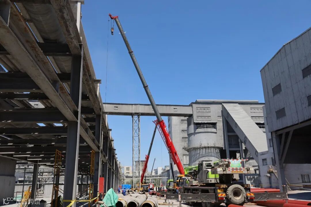“高空作业时,携带的工器具一定要装在工具包里,防止掉落。”“吊装时,一定要关注周围环境,劝阻人员禁止靠近吊装区域……”电解车间盐酸工序检修项目负责人朱东升一边仔细审核作业票据,一边叮嘱监护人管控好现场作业安全。走进电解车间盐酸工序检修现场,2辆50吨吊车和1辆25吨吊车正在拆除18台合成炉PVC管线。