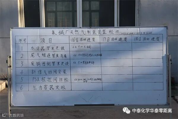 3月16日早晨9点,氯碱厂天然气制氢标准化检修拉开序幕,走进检修现场,最大的感受就是“标准化”,检修工器具整齐划一,脚手架扎设规范,检修作业负责人正在给排列有序的施工队伍面对面交底,本次检修严格按照安全生产标准化要求,以“三个强化”全力打造标准化检修现场。本次检修主要对废热锅炉西侧管束更换、水冷器管束更换、尾气烟道管束拆检消漏等27个检修项目,同时还对部分设备管线新增气动阀、PLC系统程序修改等助力黑屏操作快速推进。