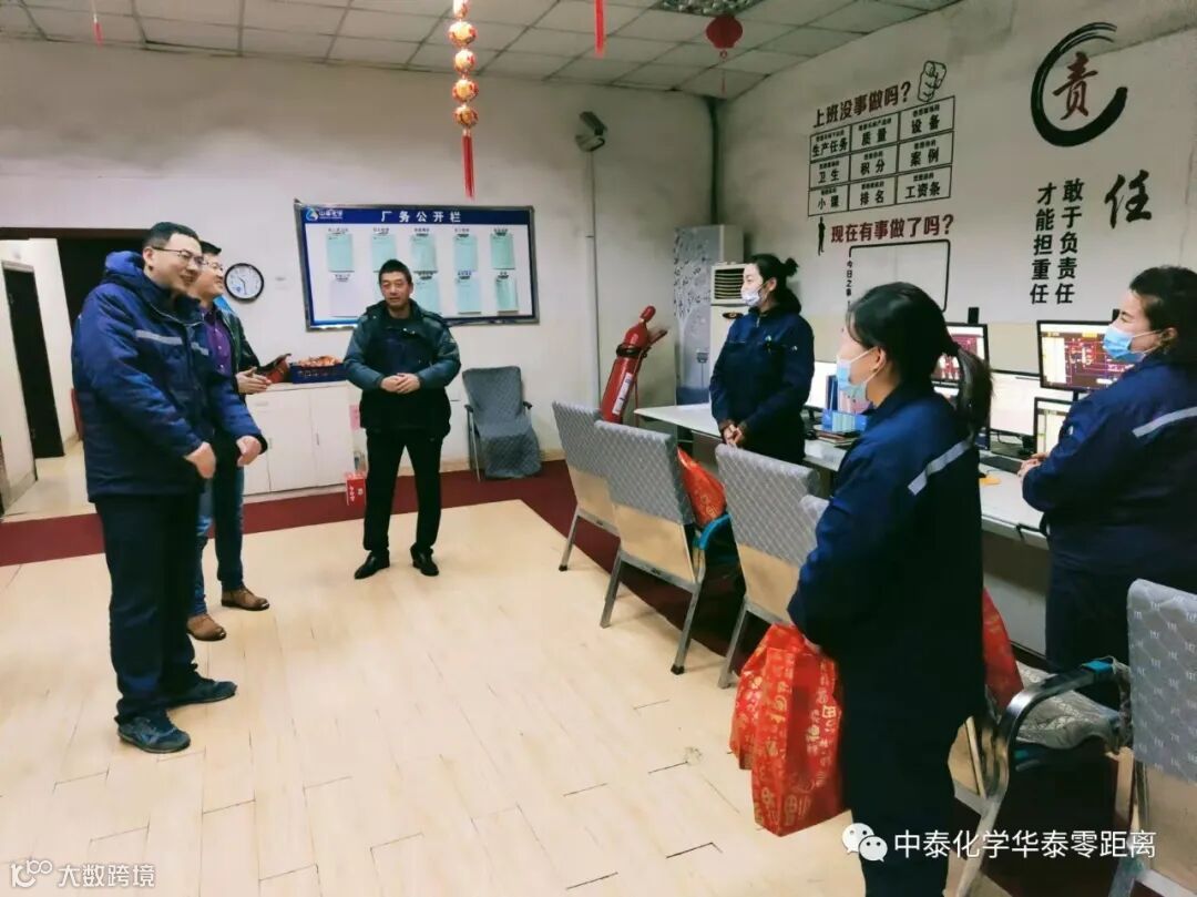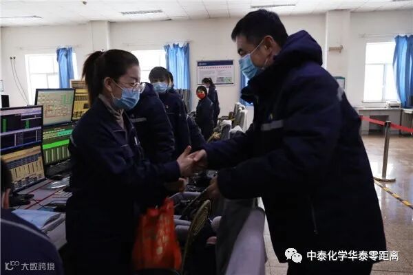 大年初一当天,华泰公司党委委员、董事长冯斌带领值班人员深入一线开展慰问,向春节期间仍坚守在一线的员工致以节日的问候。在生产管控中心操作室,冯斌对一线员工送上祝福:“大家