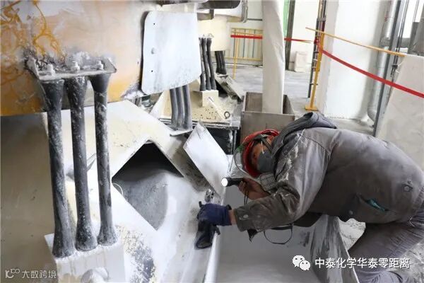 走进3号聚合干燥厂房,没有了往日的机器轰鸣,现场只有忙碌的维修人员,在一楼3名维修人员正忙碌着,一人在更换泵的机封,另两人在对旋转下料阀进行检查准备更换轴承,下料阀在正常生产中是停不下来的,只有停车的时候才能对其维护保养。来到二楼维修人员刚打开振动筛的观察口准备进行作业,而三楼老技师陈兵带领的检修小分队正在对进口离心机进行定检,他们不仅完成了检修任务,还把检修课堂搬至现场,让大家在实践中出真知。