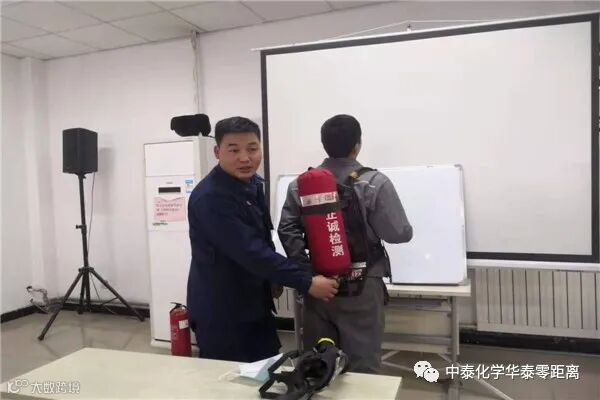 授课中,梁宝磊首先从灭火器的种类、原理、日常检查、维护、保养等方面作了全面介绍。根据车间生产特点,重点讲解了干粉灭火器和泡沫灭火器在火灾救援使用过程中的安全注意事项,同时还对正压式空气呼吸器的佩戴方法和规范操作进行了简要说明。
