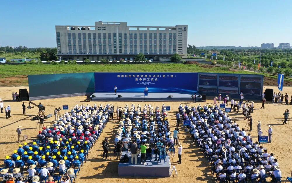 自由贸易港建设项目(第二批)集中开工仪式现场(无人机照片)。新华社记者 郭程 摄