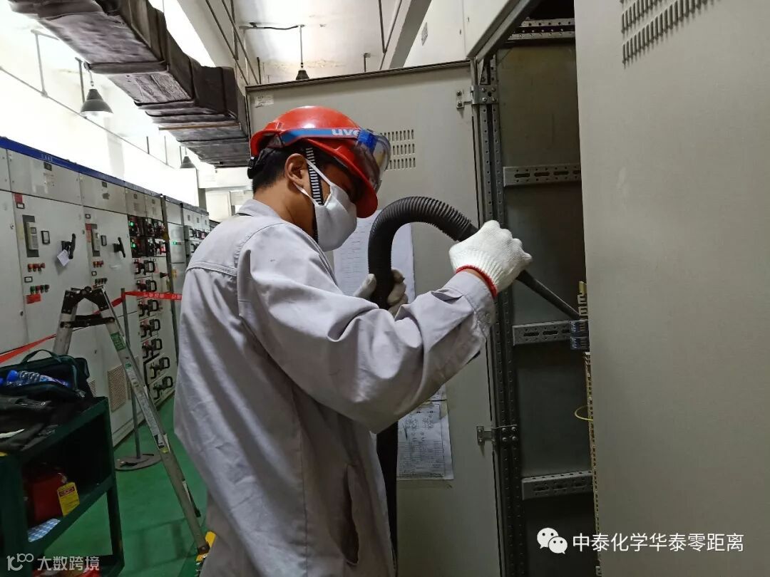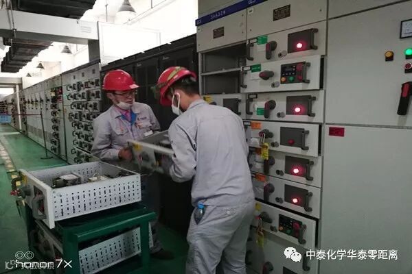 各小组人员奔赴检修作业现场,配电室检修作业负责人联系工艺人员对现场设备进行断电,联系车间值班长按照检修方案进行倒闸操作,经过验电断电验电挂设接地线等技术措施,确保检修设备不带电后,对聚合一段断路器进行检查处理。刘文绣等四名员工相互协作,对聚合一段的设备进行仔细检查,检查的内容包括母排螺丝紧固情况,插件接线情况,是否变色及软启控制回路的接线情况等。他们顾上不擦脸上留下的汗水,顾不上喝一口水,马不停蹄的进行检查和维修。截止到下午17点,将一段断路器已经检查完毕,柜后的垂排等全部吹扫完毕并贴测温蜡片,便于日后监测设备发热情况。