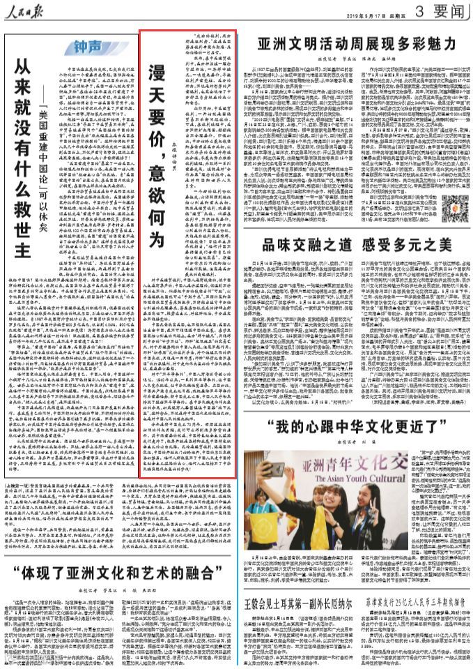 应当看到,大唱“加征关税有利论”,不过是自欺欺人罢了。试图靠加征关税或威胁提高关税来解决中美贸易摩擦问题,完全是出错了牌,把宝押在关税上最终必然导致空欢喜一场。我们奉劝一句,美方如果有足够智慧来保证自身利益的话,就应当选择与中方相向而行,在相互尊重、平等互利的基础上,通过磋商解决问题。(阅读全文)