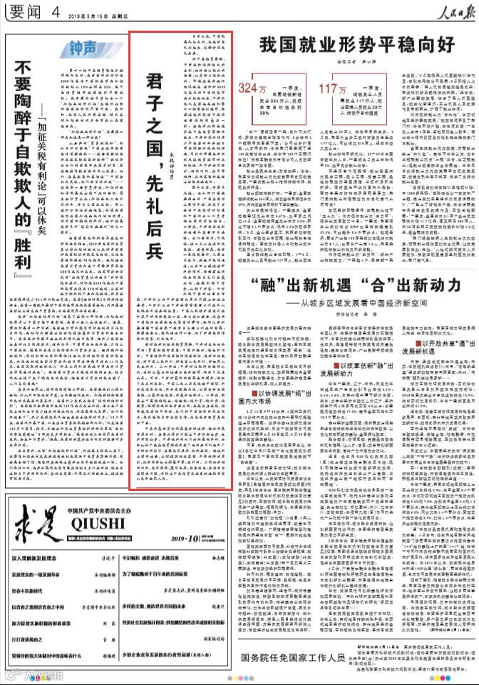 面对美方挑起的经贸摩擦,中方的立场始终明确:贸易战没有赢家,中国不想打,但也不怕打。中国经济和美国经济深度融合,美方加征关税,对中国人民不利,对美国人民不利,对世界人民也不利。从一开始,中方对此就有清醒的认识,始终以最大的诚意与美方磋商,做到了仁至义尽。同时,中方对最坏的结果也有预判,做好了充足的准备。中国人民从历史经验中懂得,不打无准备之仗,不打无把握之仗,必须坚持底线思维,从最坏处准备,向最好处努力。(阅读全文)