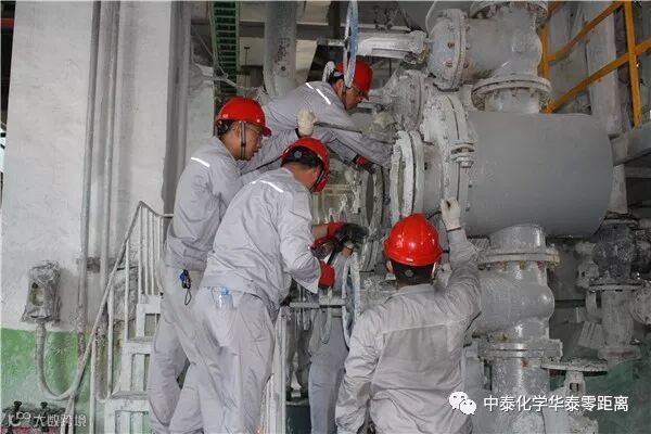 检修工作开始前,许多技术管理人员生产运营中心党员贾渊宽就早早的把洗漱用品等带到了工作岗位上,因为他知道检修工作一开始,就意味着要24小时坚守在工作现场。生产装置不稳定,就不回家,这几乎成了华泰公司领导干部和技术管理人员约定俗成的规定。为确保检修进度,不少作业需要24小时连轴转,在现场就能保证随时随地掌握检修动态,面对检修中的难点问题,随时召开现场会商定方案。公司领导随时了解检修进度,解决现场问题;安全管理人员忙着检查监督作业规范标准,确保安全施工;技术管理人员现场把控检修质量。“有他们在,检修工作干起来,就像是吃了一粒定心丸。”乙炔车间值班长陆德成说。员工在一线忙检修,处室管理人员也放弃了周天休息日,来到检修现场,与员工们一起奋战。