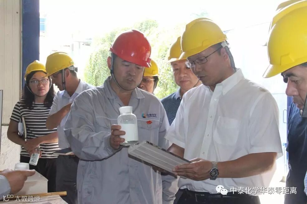 在中泰集团总经理陈道强、股份公司党委书记肖军、集团公司中泰大学校长赵伟玲及华泰公司领导冯斌、马中宇等的陪同下,督察组领导一行先后来到PVC下游产品展示区、聚合包装厂房、员工安全漫画墙、聚合车间主控室等现场。在聚合车间主控室陈道强详细介绍了中泰集团生产经营、安全环保管理、产业布局等情况。在听取关于企业发展、结构调整以及企业发展概况后,督查组领导一行对企业发展给予高度肯定。