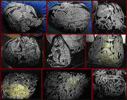 上图:在秘鲁纳斯卡平原北部有一座名为伊卡(ICA)的小村庄有一座石头博物馆。馆中陈列着一万多块刻有图案的神秘石头,上面雕刻着许多令人难以置信的图画,记录的是一个业已消失的极其先进人类远古文明,这些石头画被称为ICA石刻。博物馆里这批雕刻着图案的石头是在伊卡河决堤时开始大量被人发现。刻石依照图案的类别,被划分为太空星系,远古动物,史前大陆,远古大灾难等几类。这种分类与现代科学完全脱节,似乎在谈论一个完全崭新的课题。