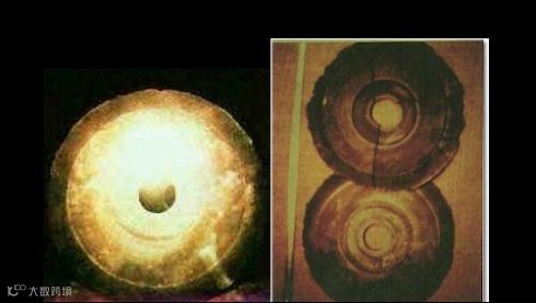 下图:1938年,中国考古学家纪蒲泰等人到青海南部的巴颜喀拉山地区考察时,在一个不太显眼的山洞里共挖出716块花岗石圆形体,中间稍四无孔,每块厚度约2厘米,从中间向四周辐射出许多十分规则的水波纹线条,极似现代的镭射唱片,上面还刻有许多现代人无法解读的各种符号。经过测定,这些石盘大约是1万多年以前的东西。