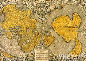 下图:托普卡比宫发现的古地图绘制了美洲、非洲及早被冰川覆盖的南极洲的地貌: