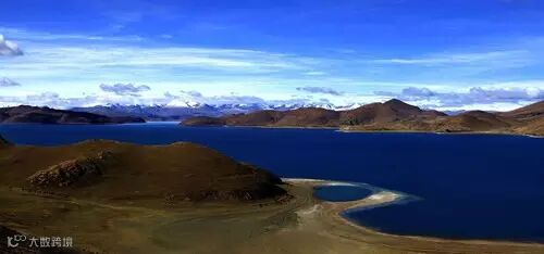 羊卓雍措被誉为世界上最美丽的水。羊卓雍措,“羊”:上面;“卓”:牧场;“雍”:碧玉;“错”:湖。连起来就是“上面牧场的碧玉之湖”。羊湖在藏人心目当中被看做是“神女散落的绿松石耳坠”,因为无论你在哪个角度,都不能看到羊卓的全貌。她的身躯蜿蜒在群山中达一百三十多公里,只有在地图或是高空你才能惊喜的发现她犹如耳坠,镶嵌在山的耳轮之上。不同时刻阳光的照射,她会显现出层次极其丰富的蓝色,好似梦幻一般。