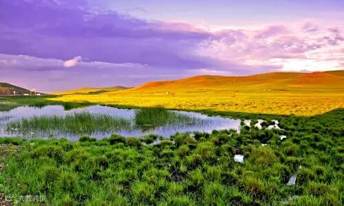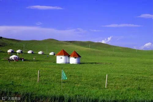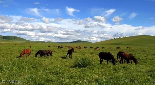 京北第一草原,草原上山高谷阔,水洼星罗,绿油油的草原犹如一块毛茸茸的绿毯,平铺在地面上。草原风光因晨昏交替而变幻无穷,清晨,一匹匹马儿在雾中吃草饮露,颇有“风吹云散见骏马”的景致;中午,金色的阳光直射在茫茫草海上,把绿色草原映得更加油亮耀眼;黄昏,骏马载着少年冲向原野,去追回散漫的畜群;入夜,如水的月光给草原罩上一层轻纱,使星星点点的各色野花朦胧有致。