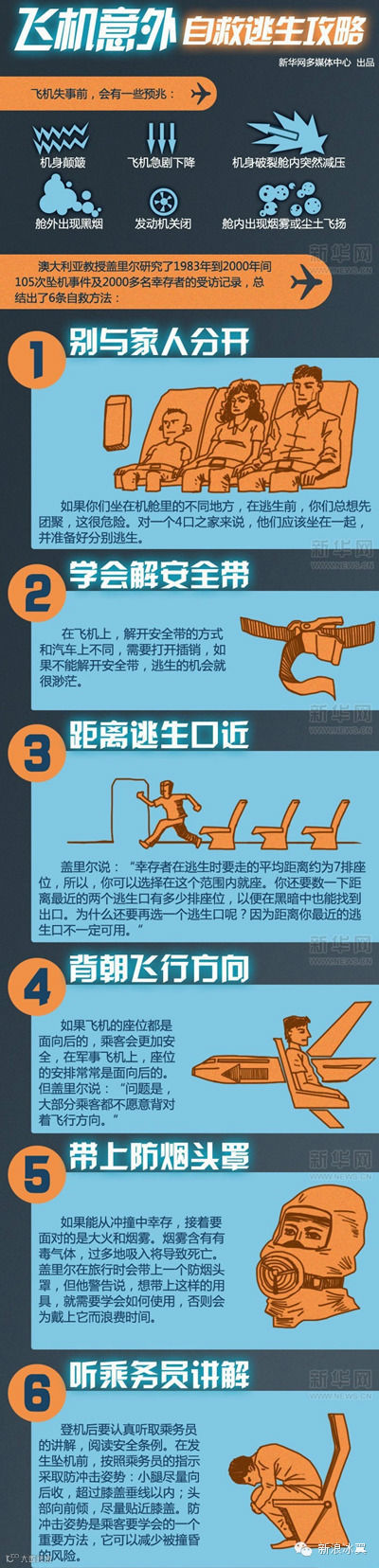 4、空难中10%是摔死的,90%的是烧死和烟熏死的。如果飞机起火且你活着,不顾一切往远处跑!不过如果不使用放冲击姿势你已经撞晕了,不系安全带你已经死了。