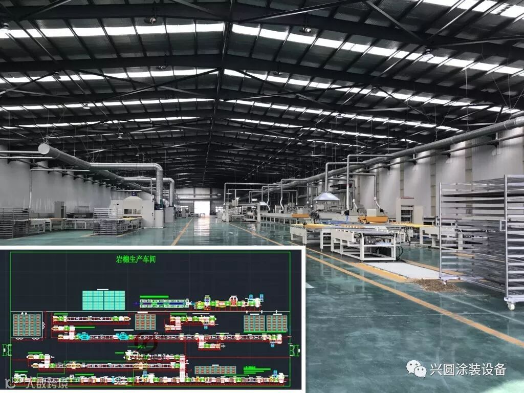 2018年,安阳腾胜保温建材有限公司引进我公司硅酸钙板全套的智能UV涂装设备与技术工艺,项目现已落成,并成功完成试机做出满意的产品。此套涂装生产线功能强大自动化程度高,包含了 :UV辊涂,转印,淋涂,喷涂,PUR平贴,复合等7种涂装工艺;在大批量生产过程中保证产品质量同时,减少了人力,降低生产成本,并提高生产效率。所出产品具有:防腐,防火,防潮,防虫,节能,环保等特点。