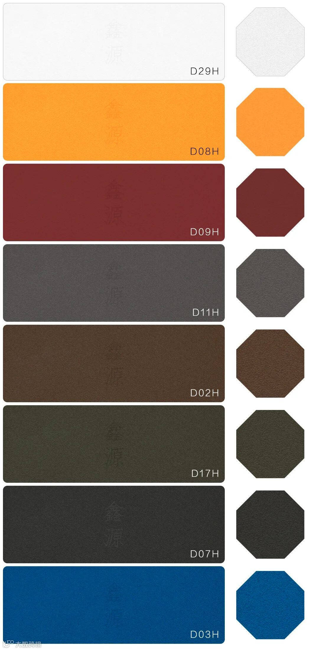 表皮细密平整,触感优越,防刮防水,色彩多样