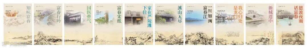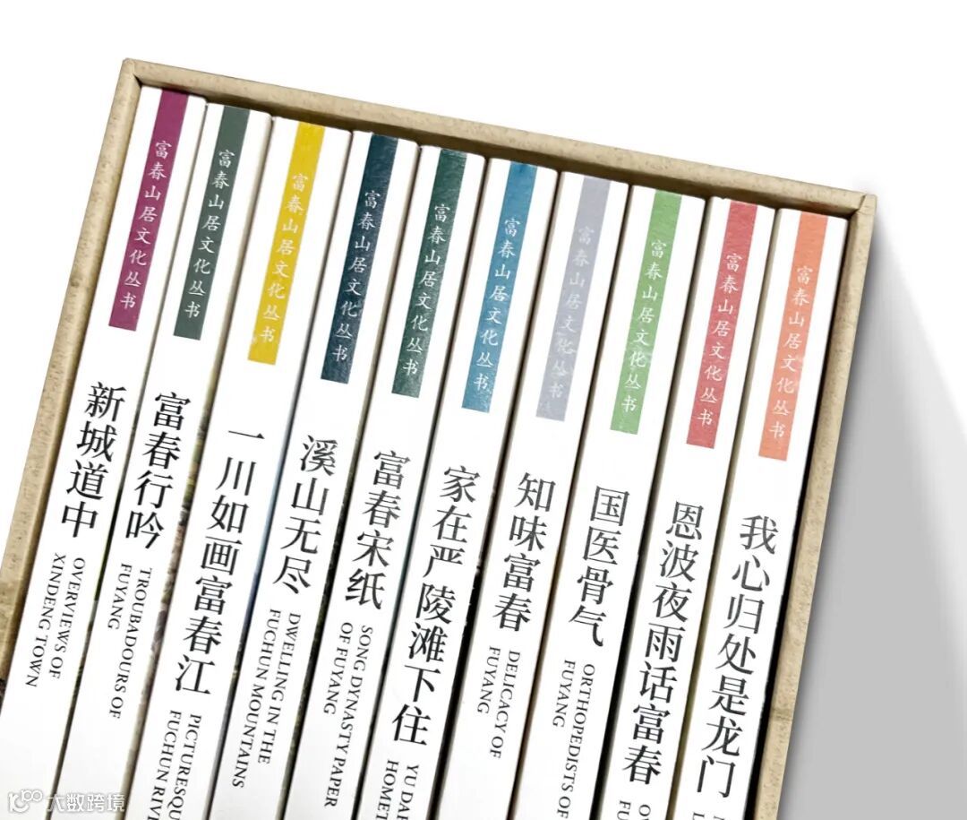 《 富春山居文化丛书》首套十册,分别为《恩波夜雨话富春》《新城道中》《我心归处是龙门》《一川如画富春江》《溪山无尽》《家在严陵滩下住》《富春宋纸》《国医骨气》《富春行吟》《知味富春》。