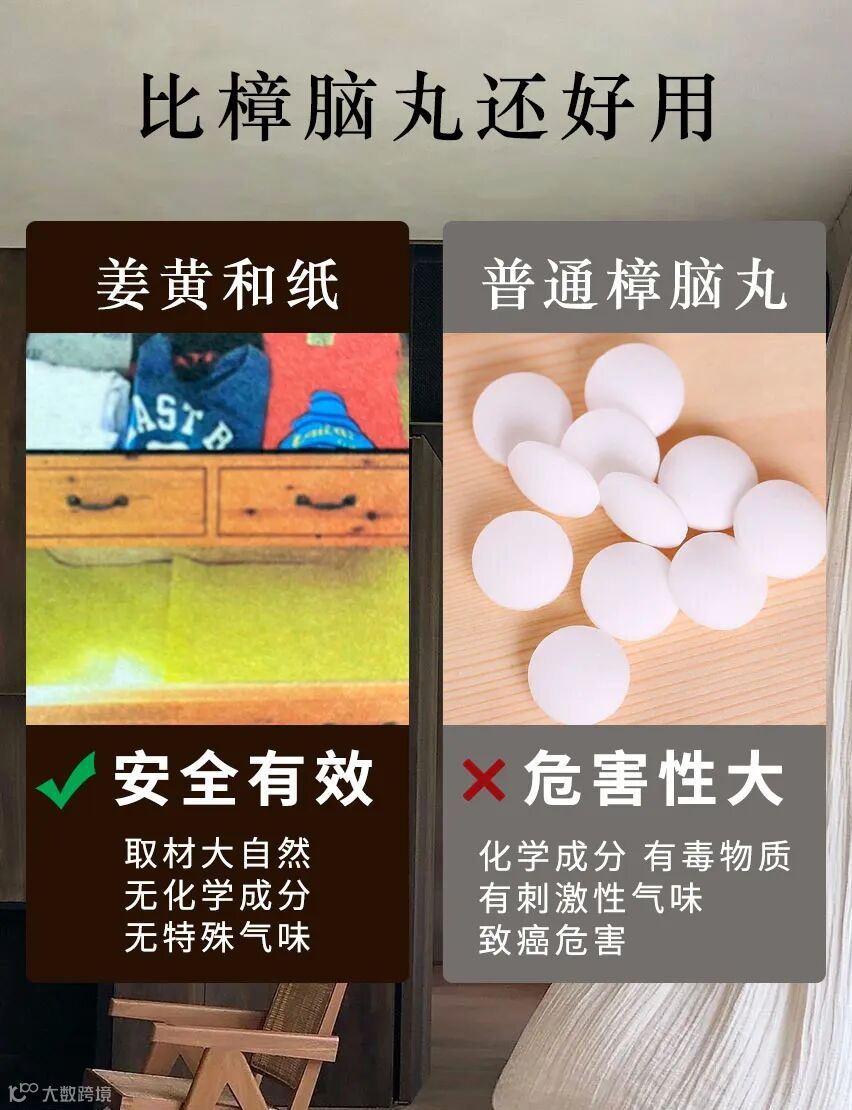 如果将姜黄和纸作为垫纸与贵重衣物一起保管,完全不需要防虫剂、除湿剂、除臭剂等, 可达到“半永久的” 安心效果。尤其在梅雨季节,是衣物、被褥潮湿不易储存的解决方案。