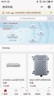 进入敦崇科技小程序商城,点击“分类”按钮,进入产品页面,可查看全系列产品。