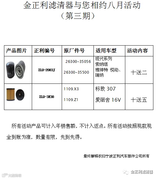 金正利滤清器,优质环保芯,品质卓越。主机合作伙伴:广汽集团,上汽集团,华晨鑫源重庆汽车有限公司。我们的使命:创造民族品牌,为民族品牌在世界上的地位而奋斗。