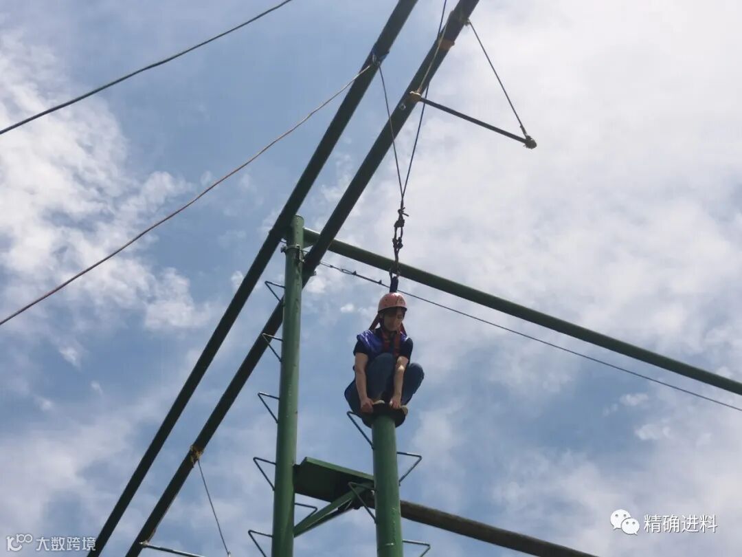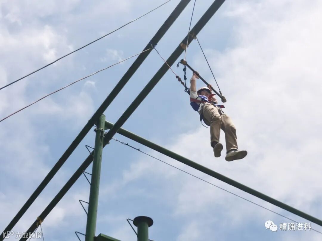 个人挑战项目,也是精彩纷呈。高空抓杠要求所有的队员必须依次独立的爬上立柱,在圆盘上站稳后,双腿同时用力蹬出,双臂前伸抓住挂在前方的单杠。这是一项极具个人挑战性的项目,只有勇气、信心、毅力和智慧兼具的人才能顺利完成。小凯有恐高,一开始就放弃挑战了,在同事的鼓励下,他克服内心的恐惧,一路向上爬,发现了一个不一样的自己;而源源晕高,虽然没能实现最后的跳跃,但是他还是勇于尝试,突破了自己;王培以前挑战过相同的项目,爬了3阶就放弃了,这次她比上次多爬了5米,这就是精进人的精神,这样的例子还有很多很多......这次经历让我们体会到团队的鼓励和支持对于个人能力的发挥起的重要作用,从而主动地在组织内建立这种良好的文化气氛。