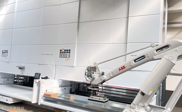 一开始Masinara还是人工操作Modula仓储系统,后面又将ABB机器人集成到仓储系统中。在这一阶段,Modula 和机器人协同工作,将料箱从木托盘转移到 Modula 托盘上。