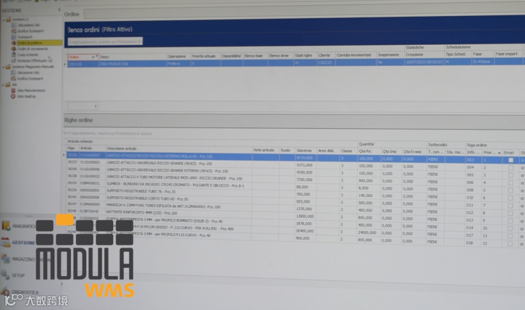 拣选订单时,Masinara首先要在Modula WMS 系统中选择客户的订单,然后 WMS 系统会创建所有未完成的任务,之后启用DECK 软件,机器人就会启动并前往 WMS 预定的目的地,即根据特定坐标前往特定的地点拣取特定的料箱。并充分利用晚上下班时间(比如下午 6点以后)进行入库,这样所有料箱都可以直接放入 Modula 中,无需操作员干预。