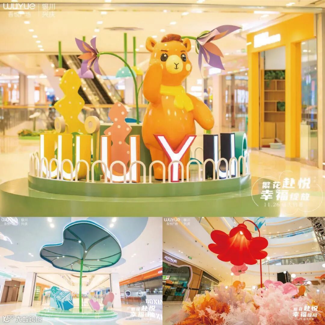 银川兴庆吾悦广场将银川本地特色文化注入商业空间中,以“塞上江南·花镜之旅”为设计理念,打造了潮力公园、真爱庄园、造梦花园等多个高颜值、特色化主题场景,带给顾客在花园中逛mall的全新体验。为顺应当前“颜值为王”的时代特色,银川兴庆吾悦广场带领专业团队,打造移步异景的视觉体验感,以更加鲜活的空间设计贯穿古与今,传统与创新,地道与融合,让消费者更深刻的感知与体验品牌的独特魅力。在餐饮空间的设计管理中,一店一色设计团队,引导餐饮在门面打造景观式一体化等候区,提升消费者购物体验。
