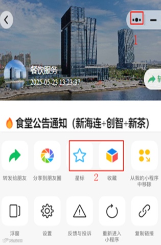 2.点击右上角“···”,“星标”或“收藏”以便快速查找。